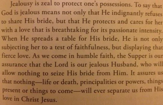 Though awe inspiring, this chapter didn't stream the thoughts that the previous chapters did. It did however strike a deep chord in understanding the curses of partaking poorly in the Lord's Supper.
