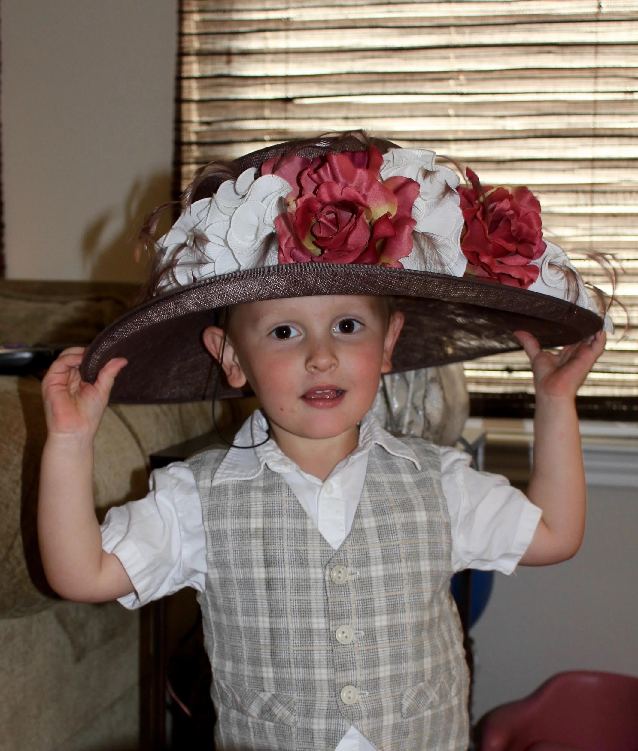 My lovely mother-in-law handcrafted a winning Derby hat - literally, she won our hat contest!